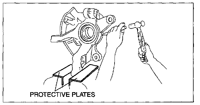 When using a vise, put protective plates in the jaws of the vise to prevent damage to parts.