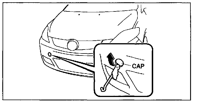 CAUTION: The cap cannot be completely removed. Do not use excessive force as it may damage the cap or scratch the painted bumper surface.
