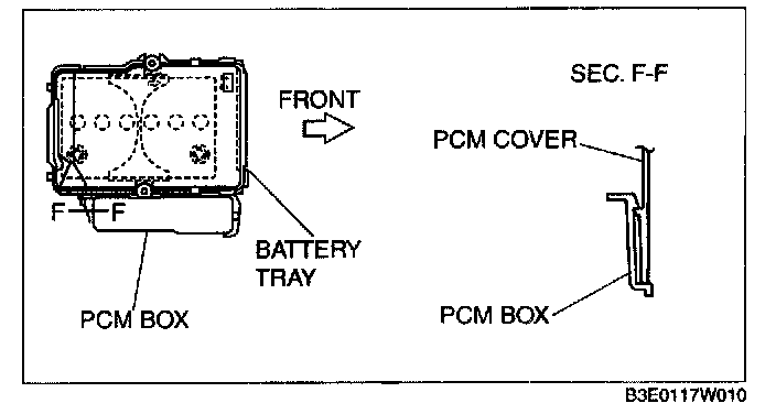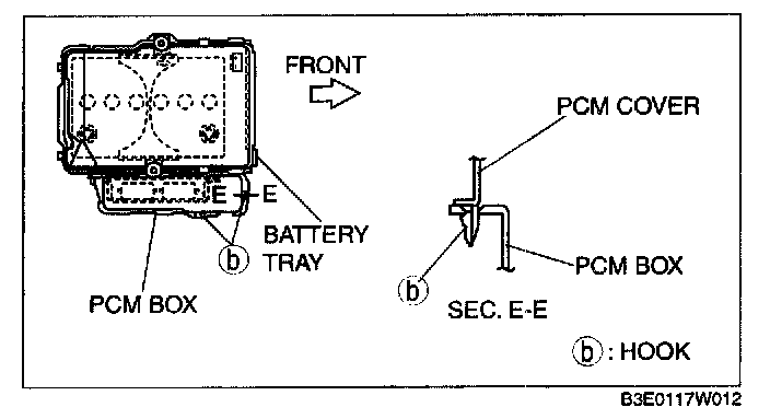 1. Install with the PCM cover hooks B aligned with the PCM box holes at two points.