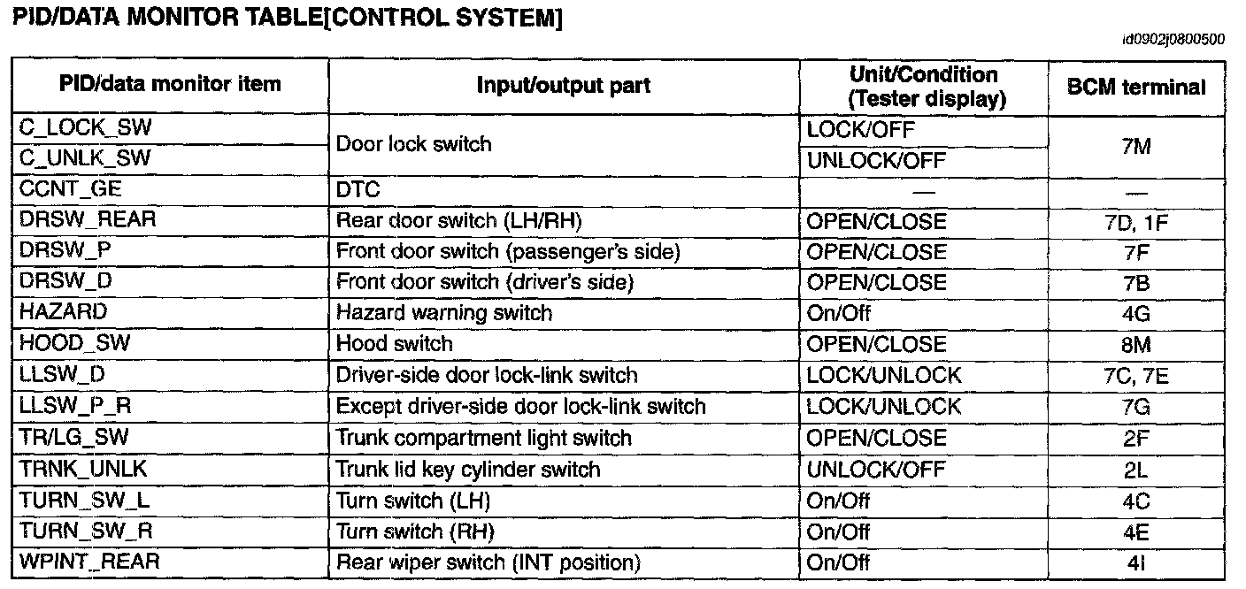 PID/Data Monitor Table
