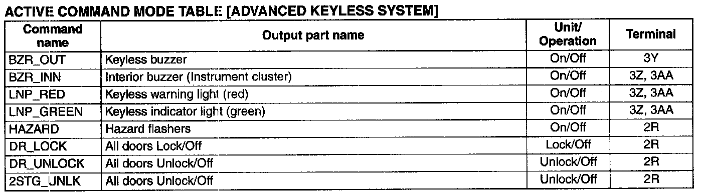 Active Command Mode Table[Advanced Keyless System]:
