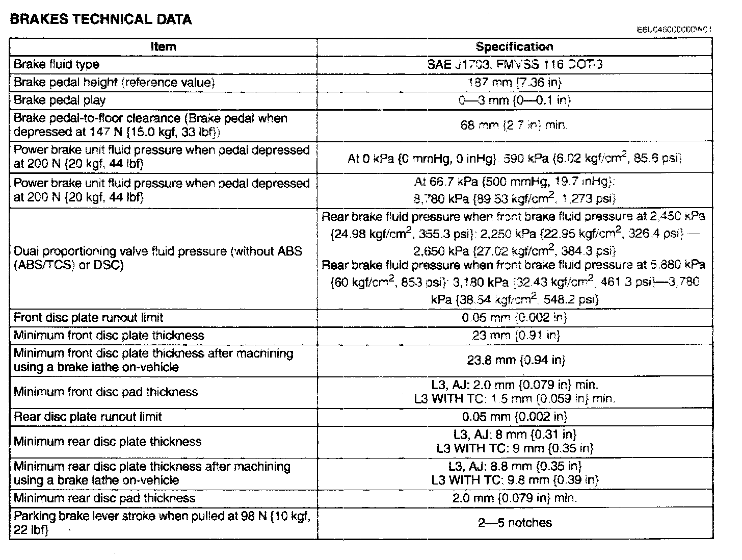 Brakes and Traction Control: Specifications