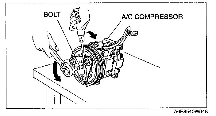 2. When installing a new A/C compressor body, replace the bolt.