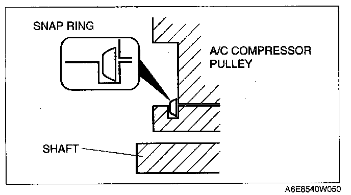 1. When installing a new pressure plate, A/C compressor pulley, stator, or A/C compressor body, replace the snap ring.