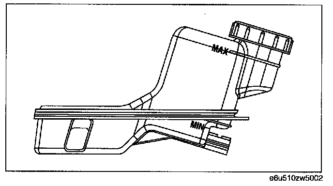Verify that the fluid is between the MIN mark and the MAX mark.