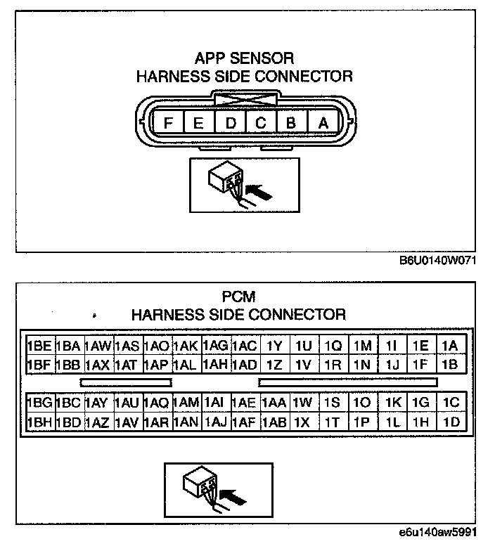 - APP sensor terminal B and PCM terminal 1AV