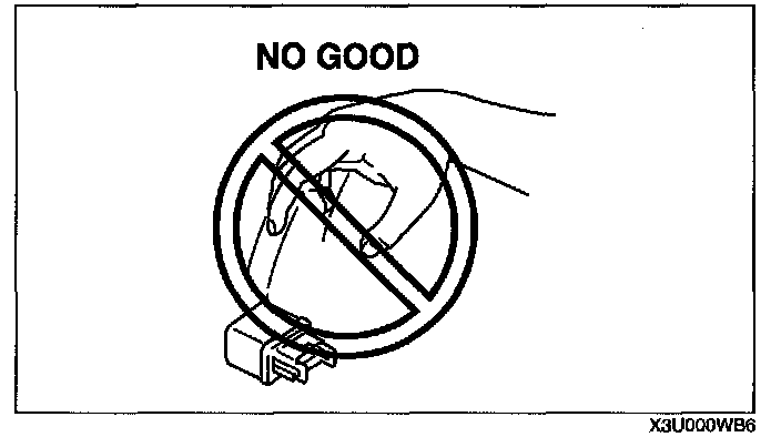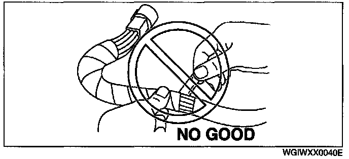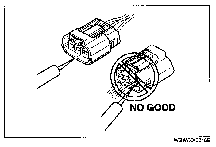 - When a tester is used to inspect for continuity or measuring voltage, insert the tester probe from the wiring harness side.