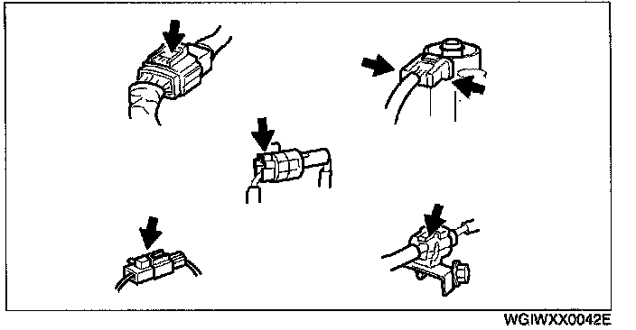 - When disconnecting connector, grasp the connectors, not the wires.