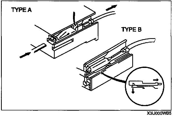 - Use the appropriate tools to remove a terminal as. shown. When installing a terminal, be sure to insert it until it locks securely.