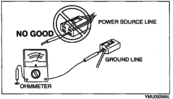 CAUTION: Do not connect the ohmmeter to any circuit where voltage is applied. This will damage the ohmmeter.