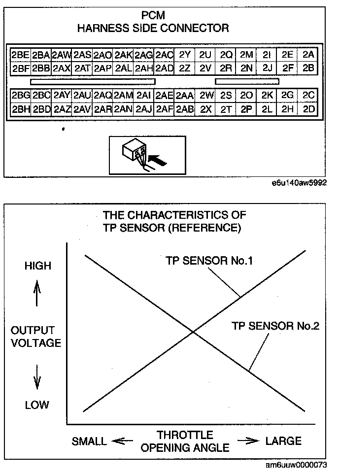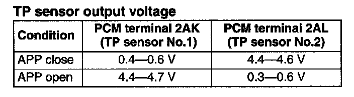 4. Verify that the PCM terminal 2AK and 2AL change smoothly while throttle valve is gradually opened.