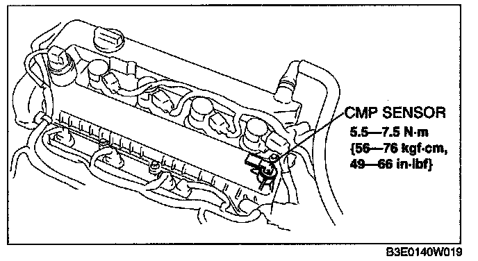 CAUTION: When replacing the CMP sensor, make sure there is no foreign material on it such as metal shavings. If it is installed with foreign material, the sensor output signal will malfunction resulting from fluctuation in magnetic flux and cause a deterioration in engine control.