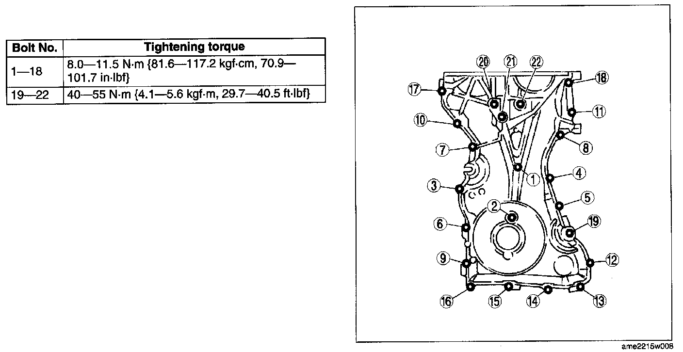 Install the engine front cover bolts in the order as shown in the figure.