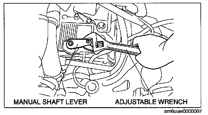 5. Set the adjustable wrench as shown in the figure to hold the manual shaft lever.