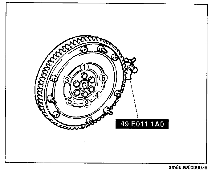 5. Gradually tighten the flywheel lock bolts in a crisscross pattern.