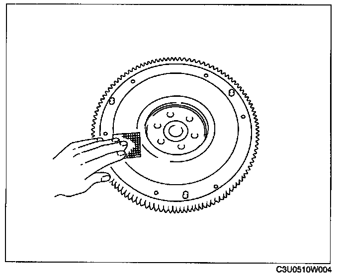 ^ Inspect the runout of the surface that contacts the clutch disc with the flywheel installed to the crankshaft.