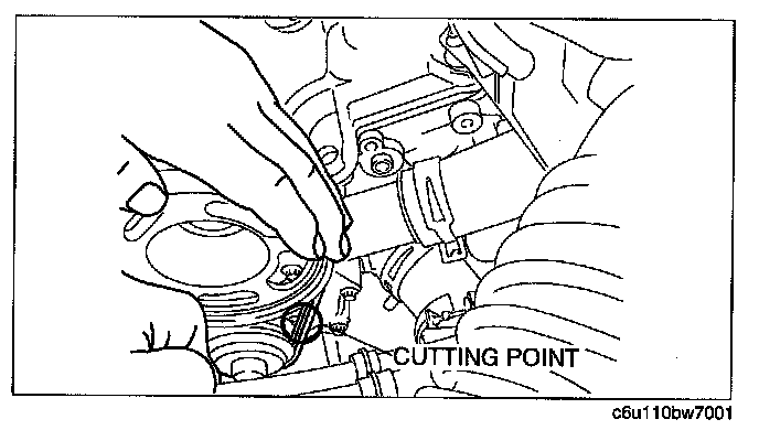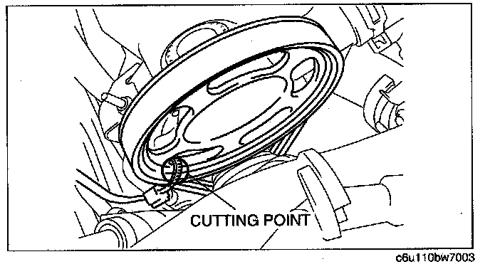 ^ To prevent damage to the belt, cut the tie wrap at the pulley side using the nipper or scissors when removing the tie wrap by cutting it.