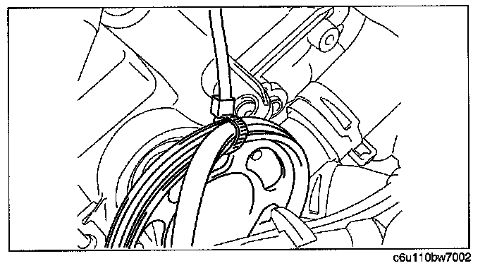 5. Secure the water pump drive pulley and the new belt using a tie wrap.