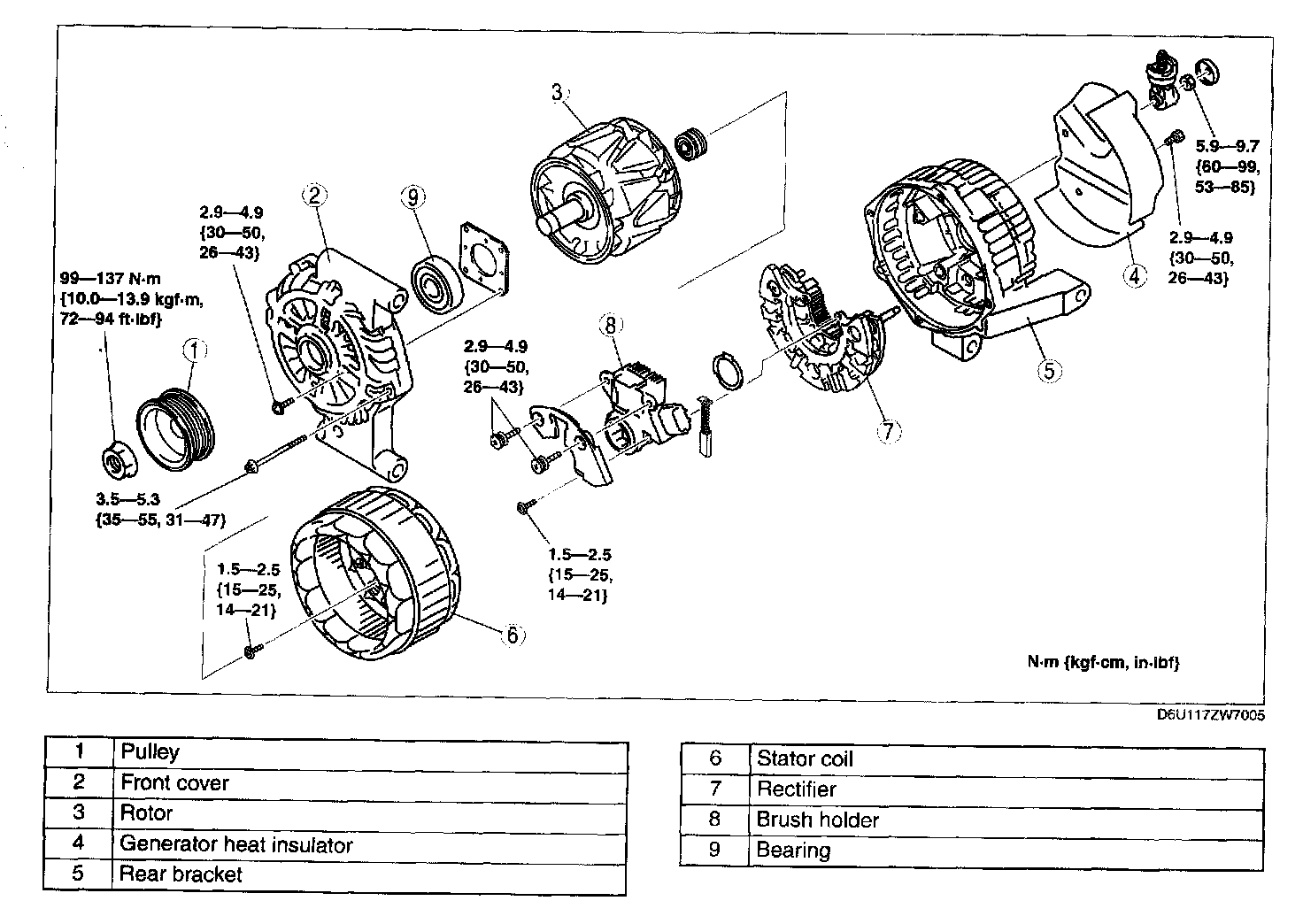 GENERATOR DISASSEMBLY/ASSEMBLYCAUTION: Melt the solder quickly, otherwise the diodes (rectifier) and regulator will be damaged by excessive heat.