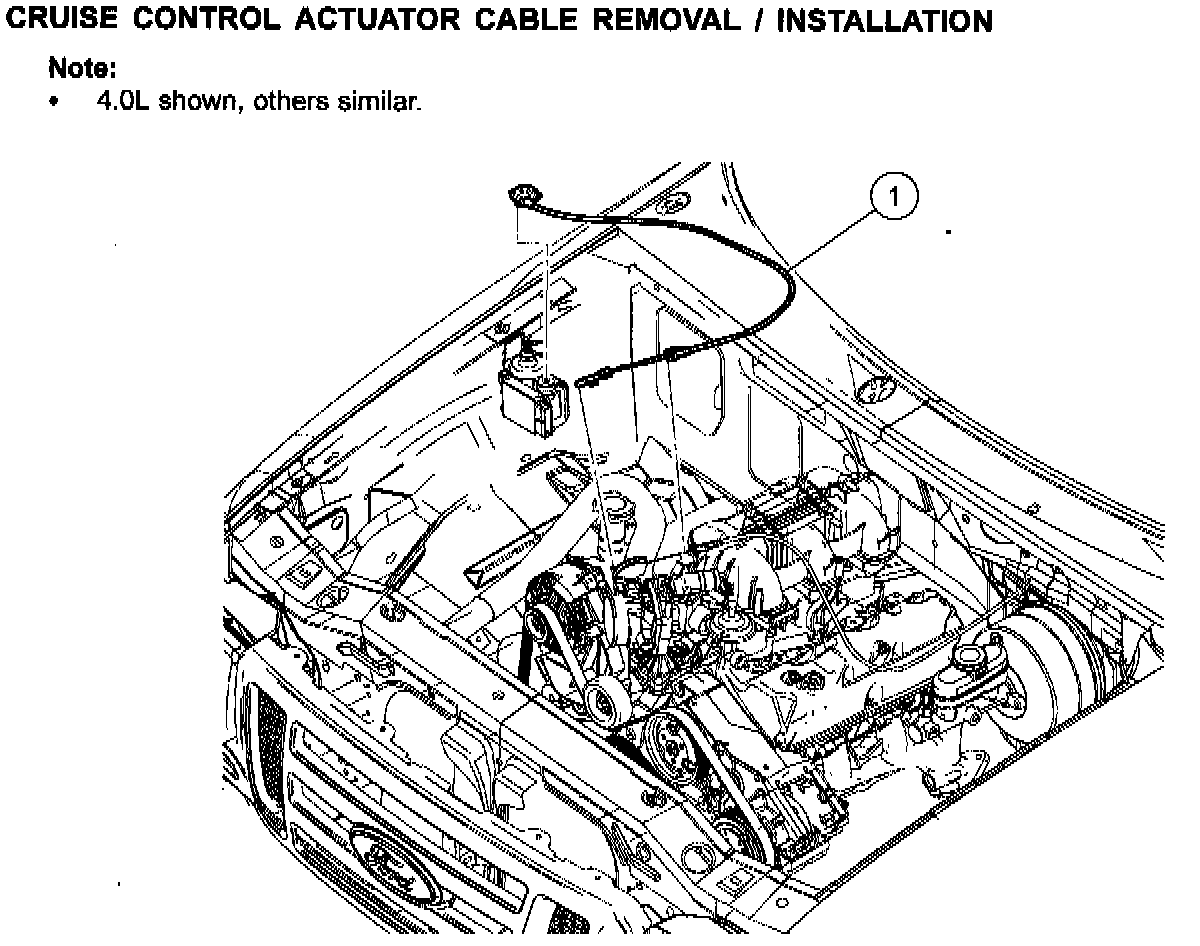 Cruise Control Actuator Cable Removal / Installation1. Remove the cruise control cable cap from the cruise control servo.