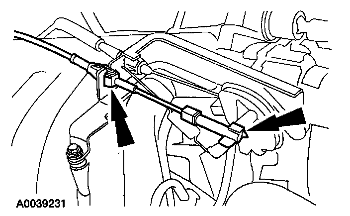 - Depress the tabs and separate the cruise control cable from the intake manifold.