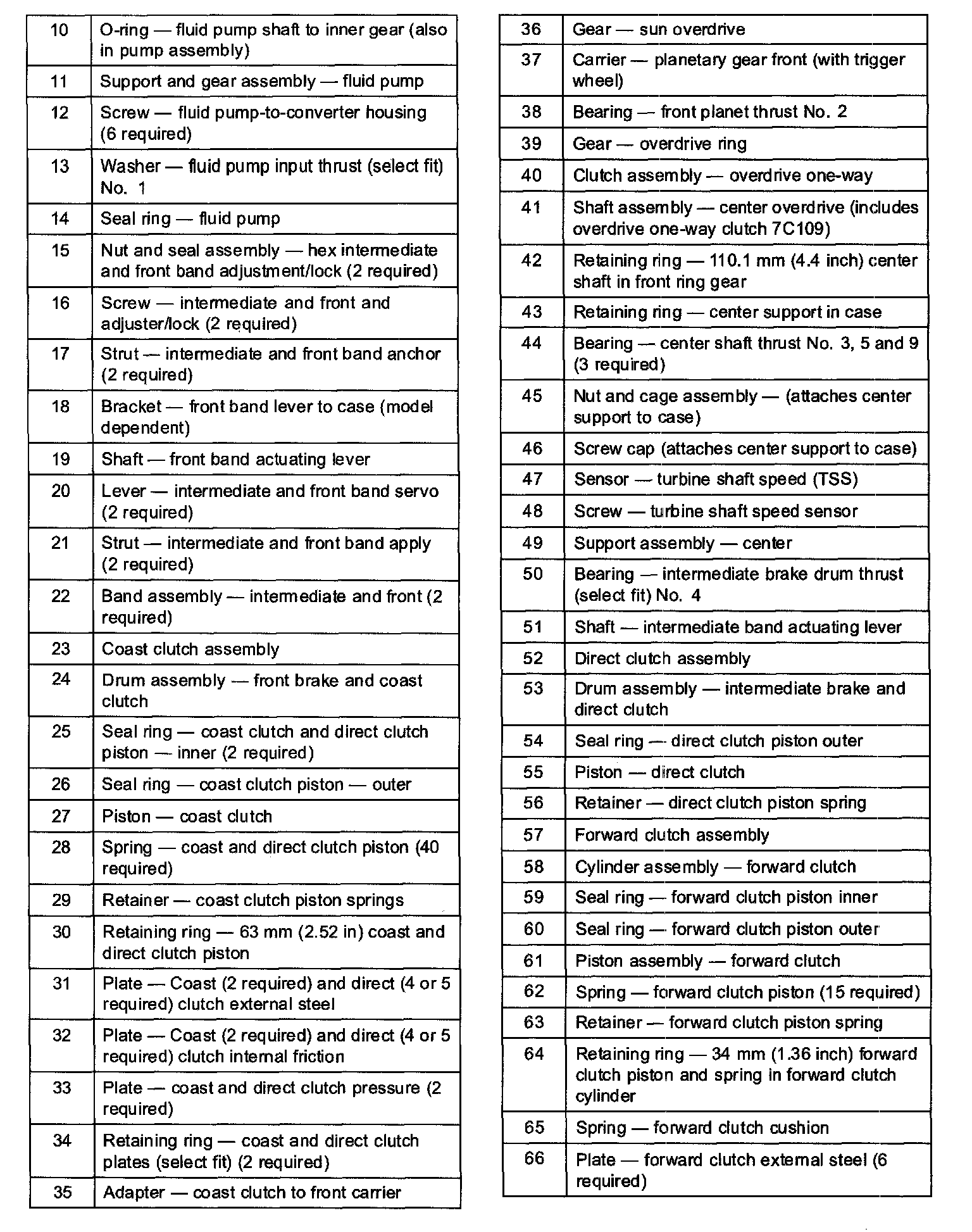 ^ The overdrive one-way clutch overruns during all coast operations and at all times in 5th gear.
