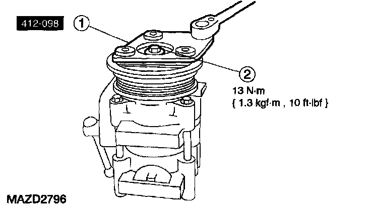 1. Hold the A/C clutch plate retaining bolt.
