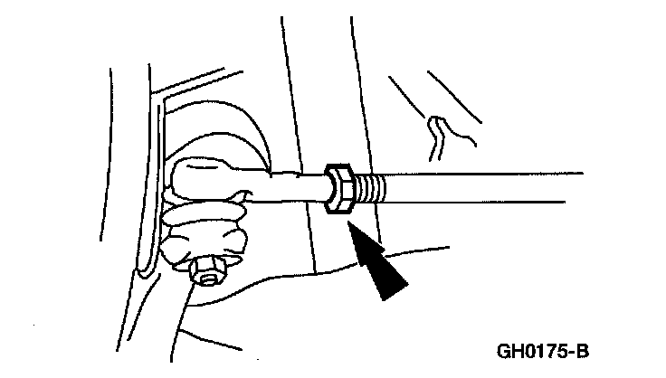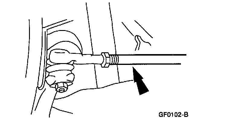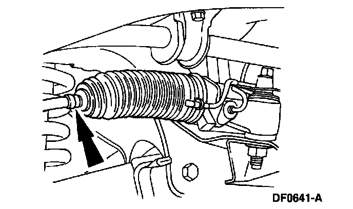 ^ Do not allow the steering gear bellows to twist when the front wheel spindle tie rod is rotated.