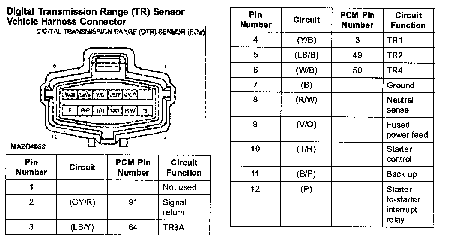 Digital Transmission Range (TR) Sensor Vehicle Harness Connector: