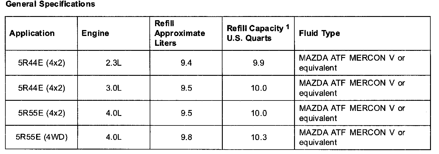 AUTOMATIC TRANSMISSION SPECIFICATIONSGeneral Specifications: