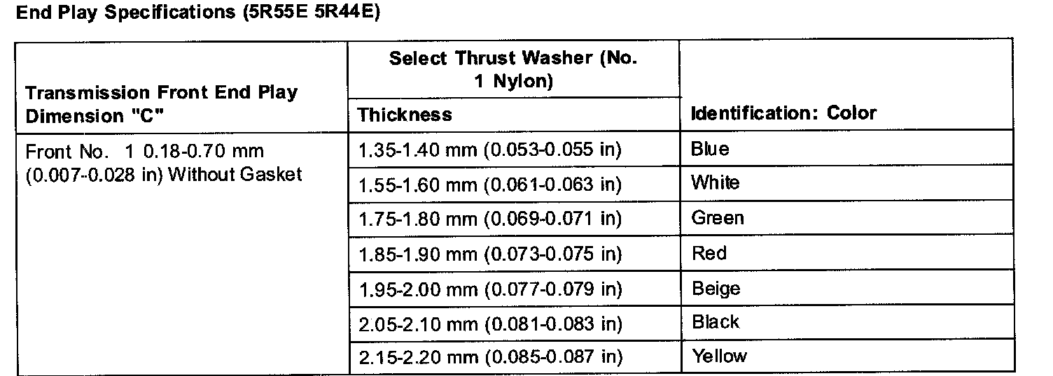End Play Specifications (5R55E 5R44E) (Part 1):