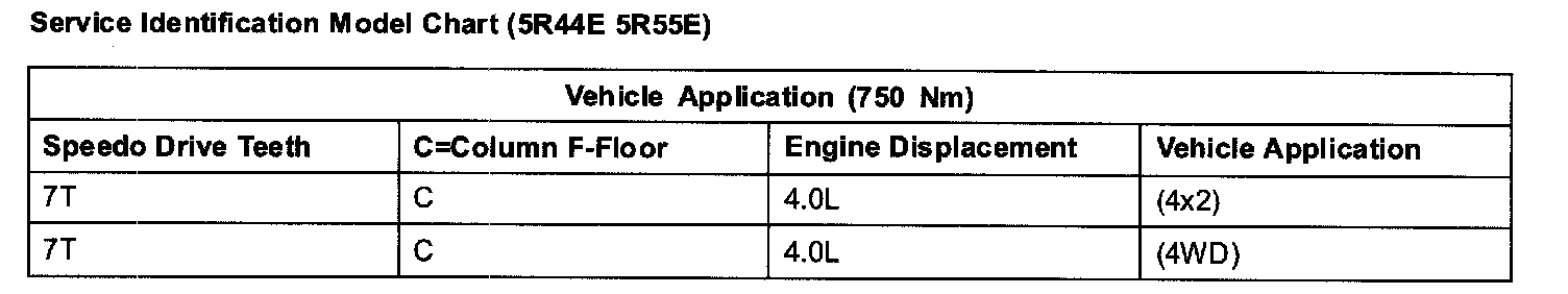 Service Identification Model Chart (5R55E 5R44E):
