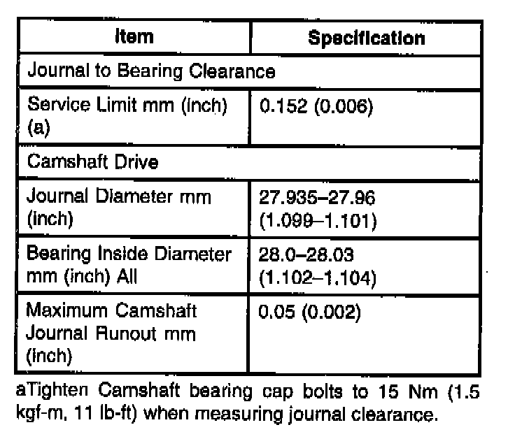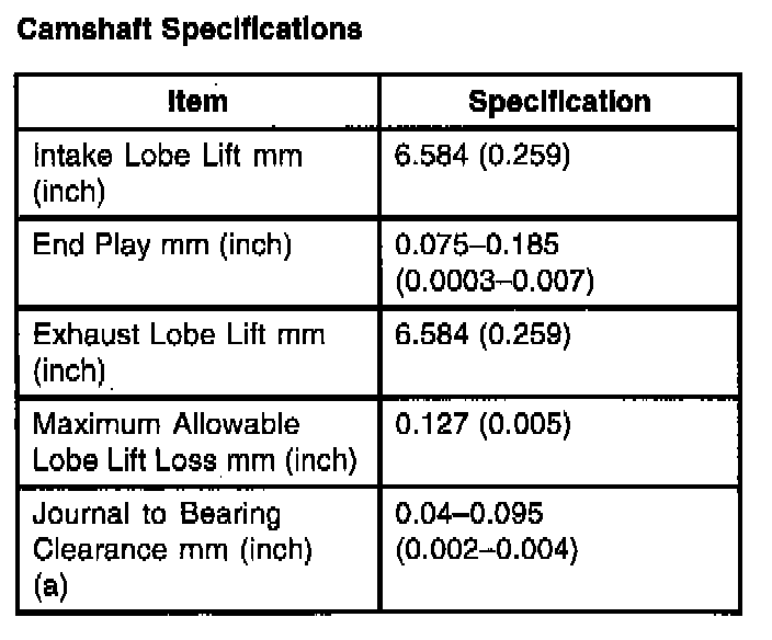 Camshaft Specifications