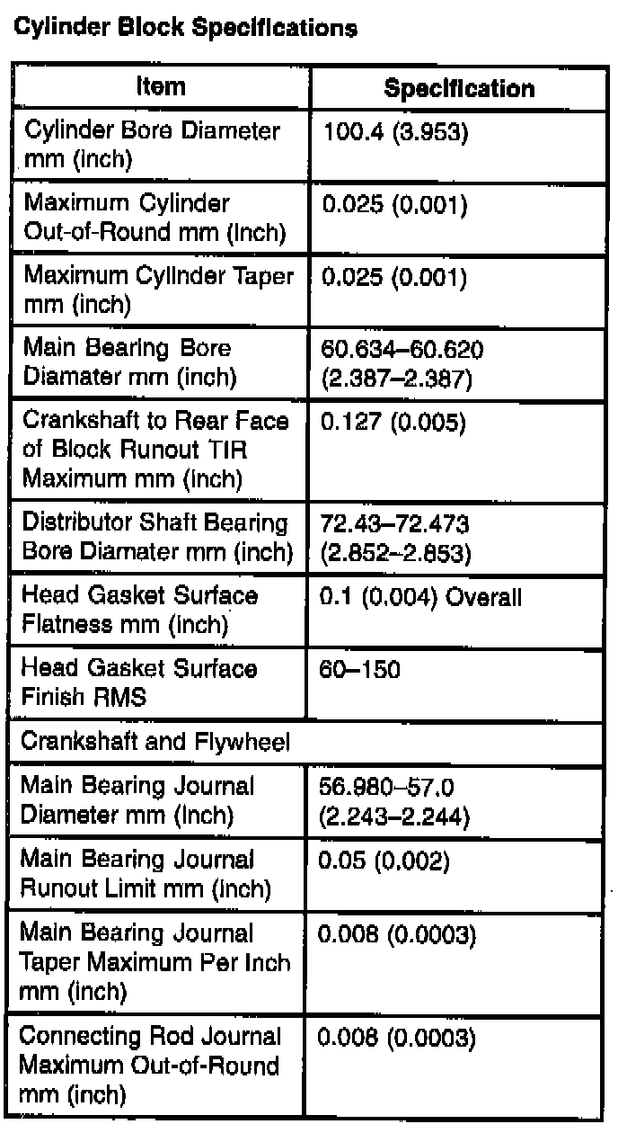 Cylinder Block Specifications