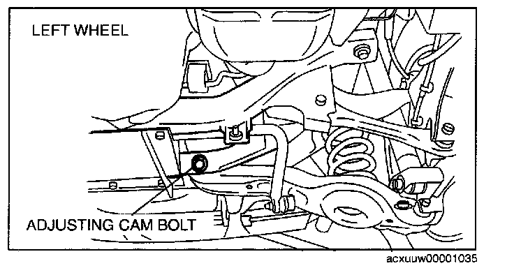 2. Rotate the adjusting cam bolt in either direction to adjust the toe-in.