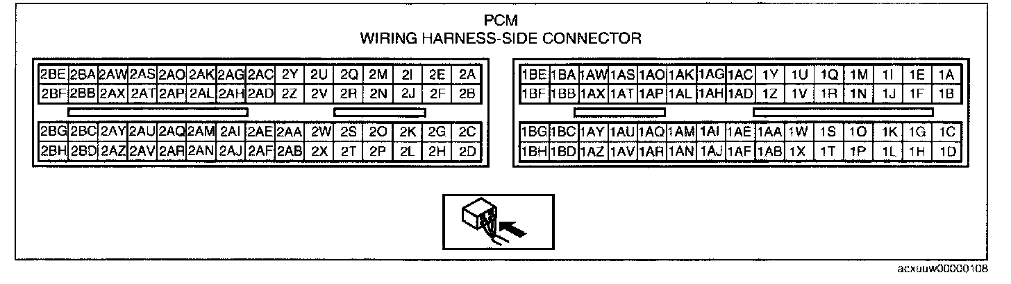 - Throttle body terminal A and PCM terminal 2AK