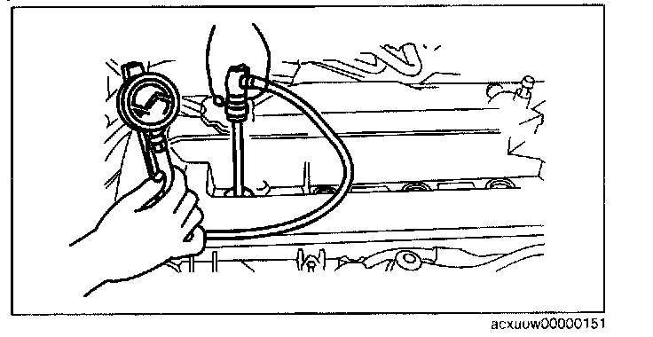 ^ If the pressure does not increase, valve seizure, valve attachment failure, or pressure leakage from the cylinder head gasket might be occurring. Perform overhaul servicing.