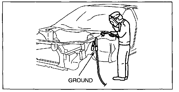A vehicle has various electrical parts. To protect the parts from excessive current generated when welding, be sure to perform the following procedure.