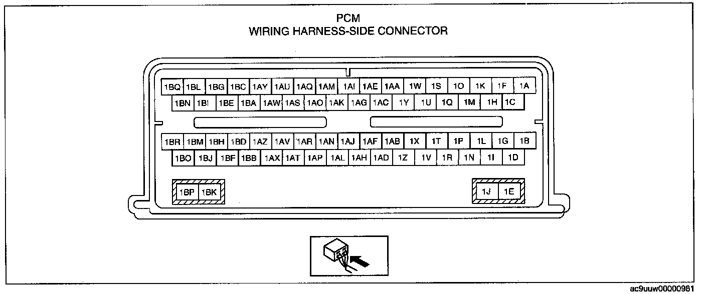 3. Verify that the PCM terminal 1AC, 1AG and 1AK voltages are as shown in the table.
