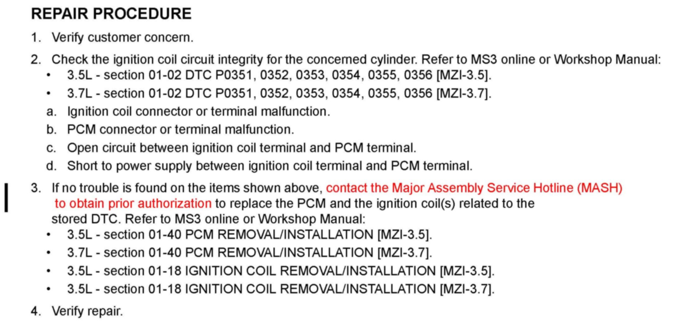 Home >> Mazda >> 2007 >> CX-9 V6-3.5L >> Repair and Diagnosis >> Powertrain Management >> Computers and Control Systems >> Engine Control Module >> Technical Service Bulletins >> Customer Interest >> Ignition/Engine Controls - MIL ON/DTCs P0351-P0356