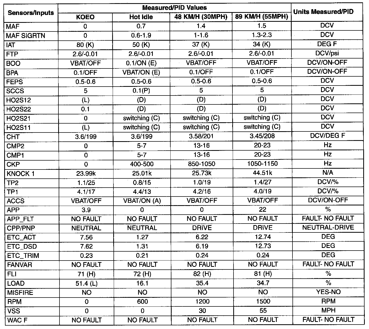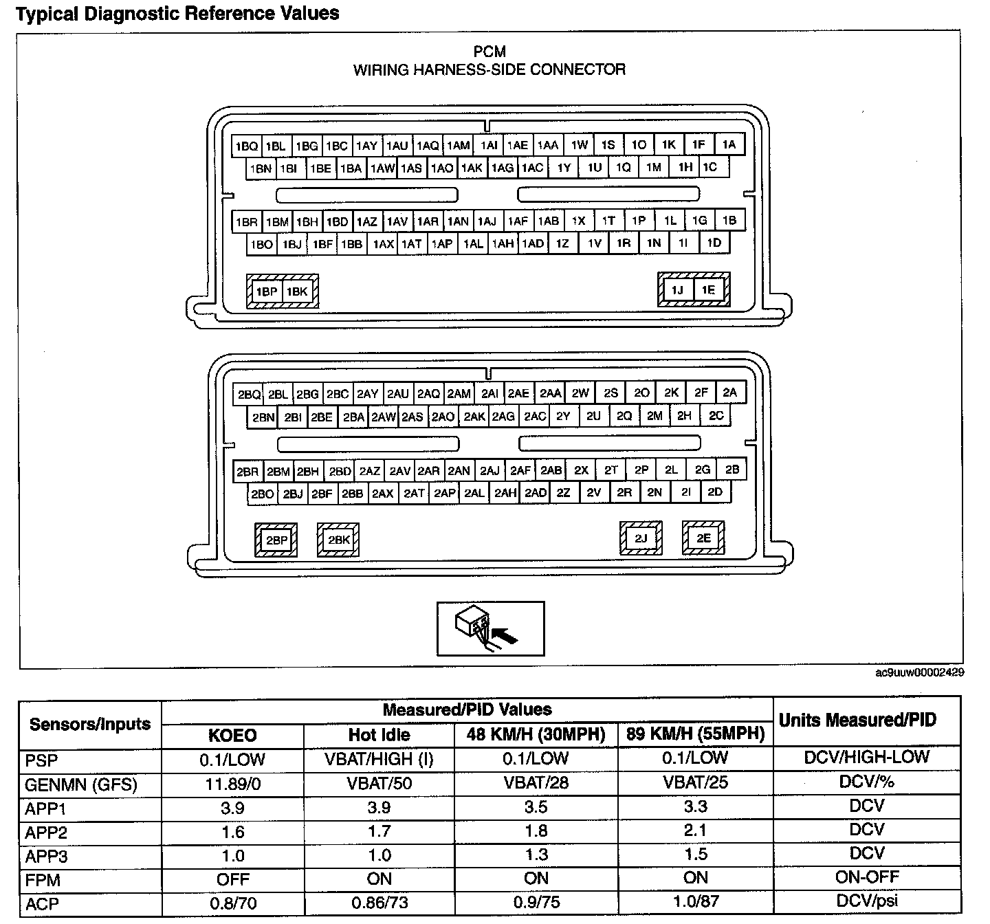 Pinout Values and Diagnostic Parameters