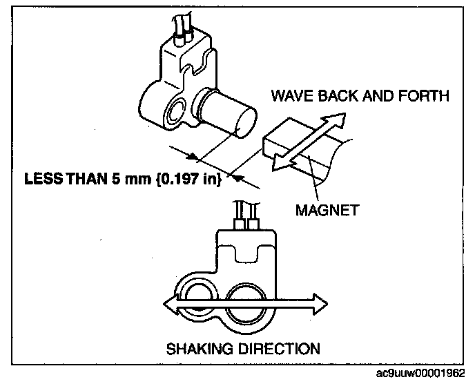 4. Measure the current while waving a magnet back and forth over the top of the VSS (less than 5 mm (0.197 in)).