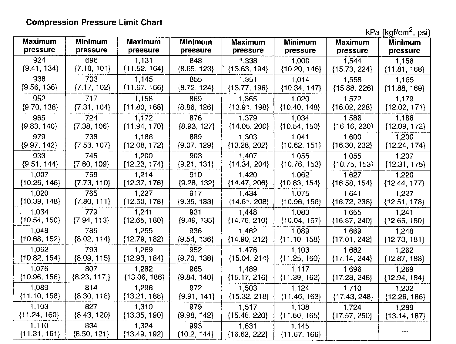 Compression Pressure Limit Chart: