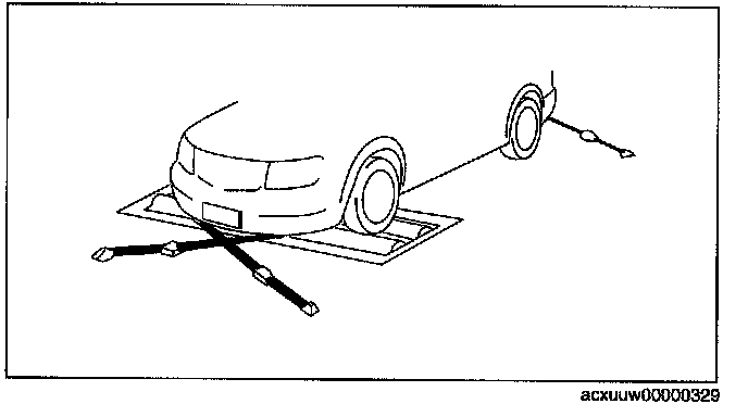 3. Support the wheels on the side not to be measured (near the wheels) using safety stands.