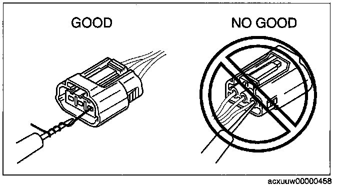 CAUTION: To prevent damage to the terminal, wrap a thin wire around the tester probe before inserting into terminal.