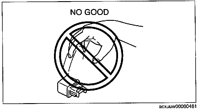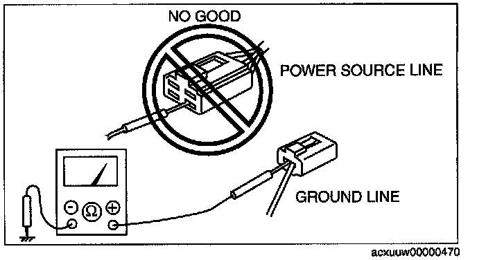 - When a tester is used to inspect for continuity or measuring voltage, insert the tester probe from the wiring harness side.