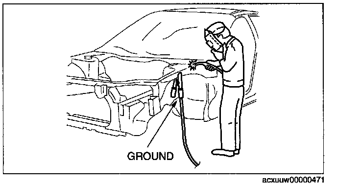 A vehicle has various electrical parts. To protect the parts from excessive current generated when welding, be sure to perform the following procedure.