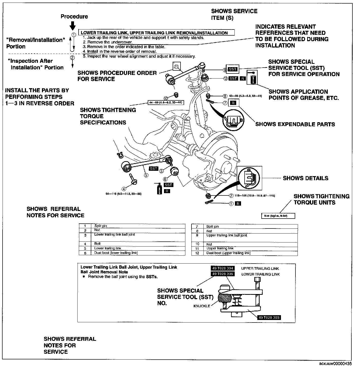 2. Expendable parts, tightening torques, and symbols for oil, grease, and sealant are shown in the overview illustration. In addition, symbols indicating parts requiring the use of special service tools or equivalent are also shown.