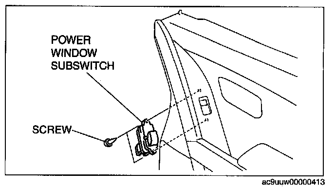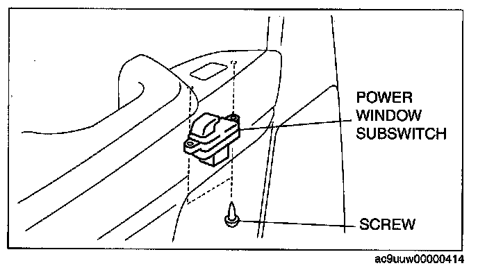 4. Remove the screw, and remove the power window subswitch from inside the front door trim.