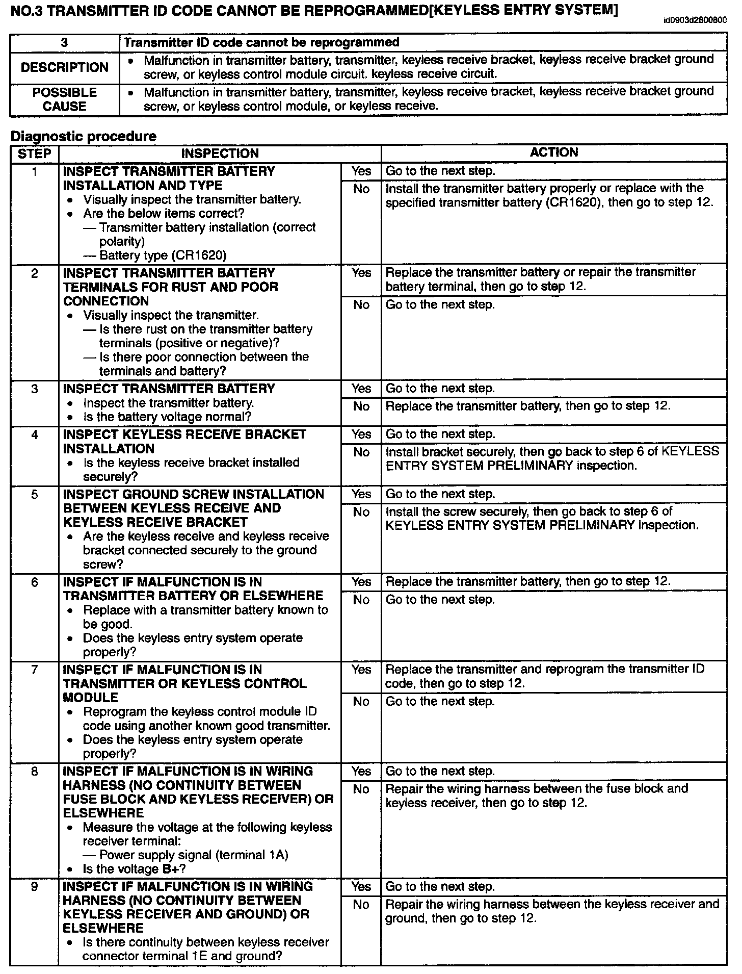No.3 Transmitter ID Code Cannot Be Reprogrammed